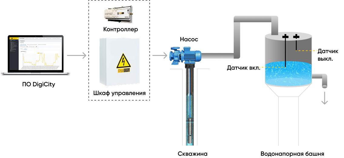 Наша современная система позволяет отслеживать состояние насосов, контролировать работу и управлять ими удаленно через интернет.